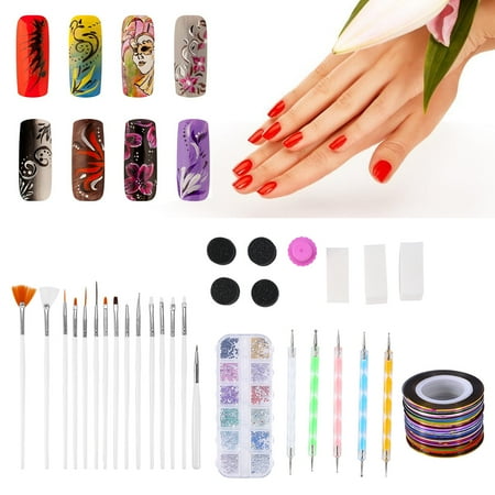 Qiilu Nail Art Tools Kit Decoration Rhinestone Nail Art Brush Dotting Pen Sponge Nail Stamp Threadnail Decoration Rhinestone Nail Art Tools Kit